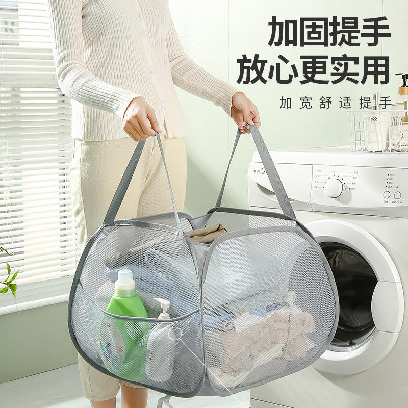 Cesto de ropa plegable de gran capacidad, cesta de almacenamiento redonda y plegable para ropa, uso en el baño