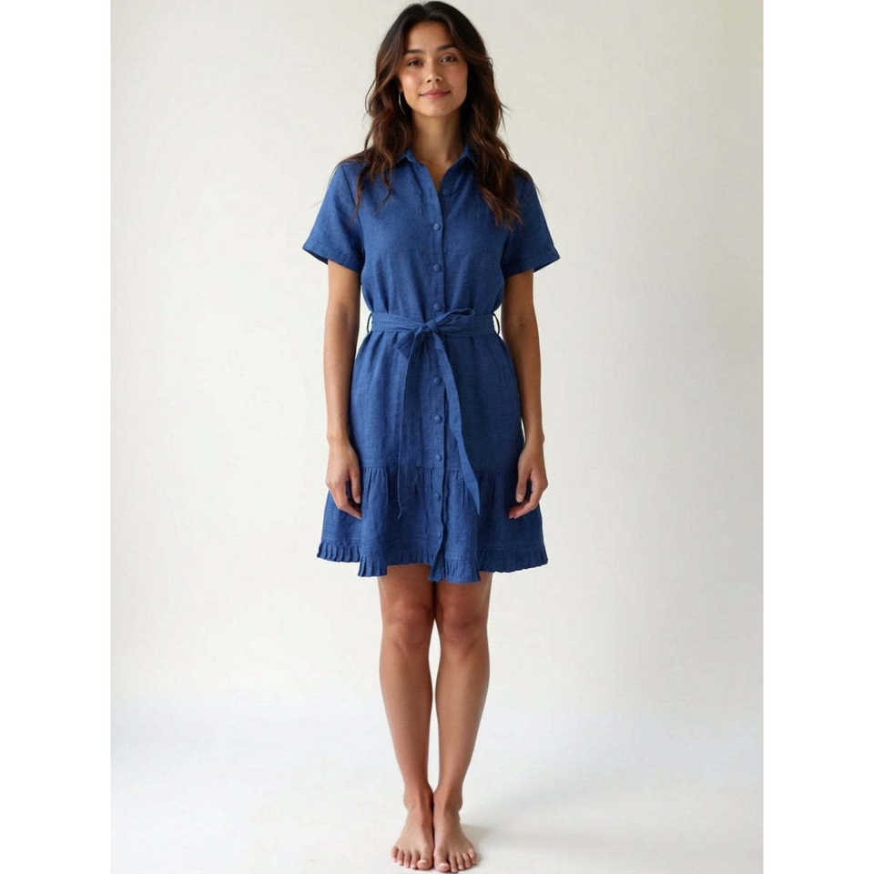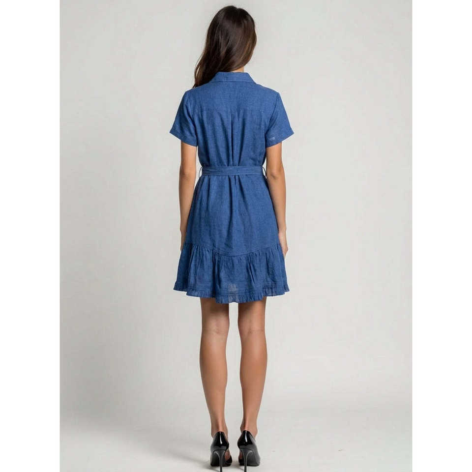 Minivestido de Algodón 100% con Cuello, Volantes en el Bajo y Botones, Estilo Casual Versátil para Uso Diario y Graduación, Talla XS, Largo hasta la Rodilla, ODM