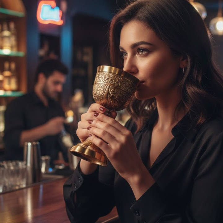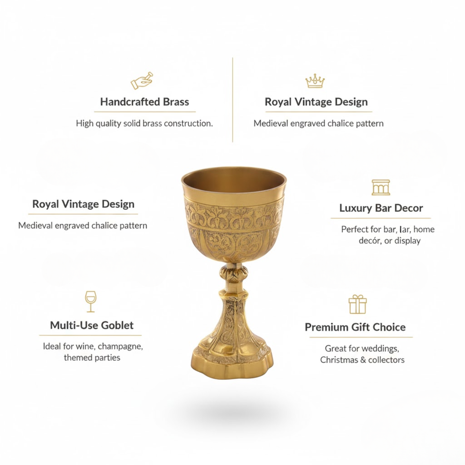 Juego de Copas de Vino de Latón Hechas a Mano | Cáliz Decorativo Medieval Real de la India, Colección de Regalos de Lujo, Decoración para Bar