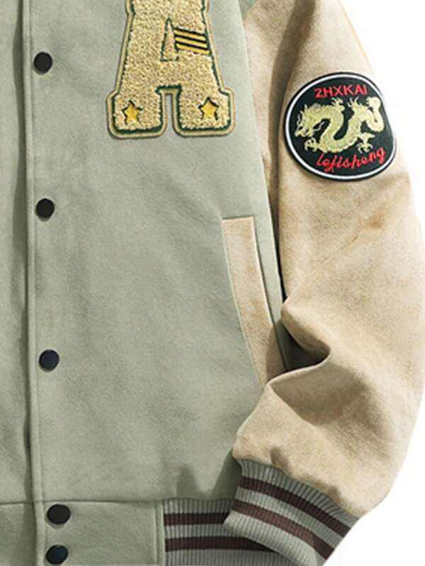 Chaqueta de béisbol inspirada en la universidad para hombre, verde oliva, 100% algodón, cuerpo, mangas Beige, Vintage Varsity, ropa de invierno acolchada con capucha
