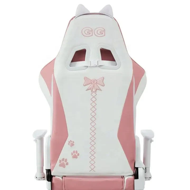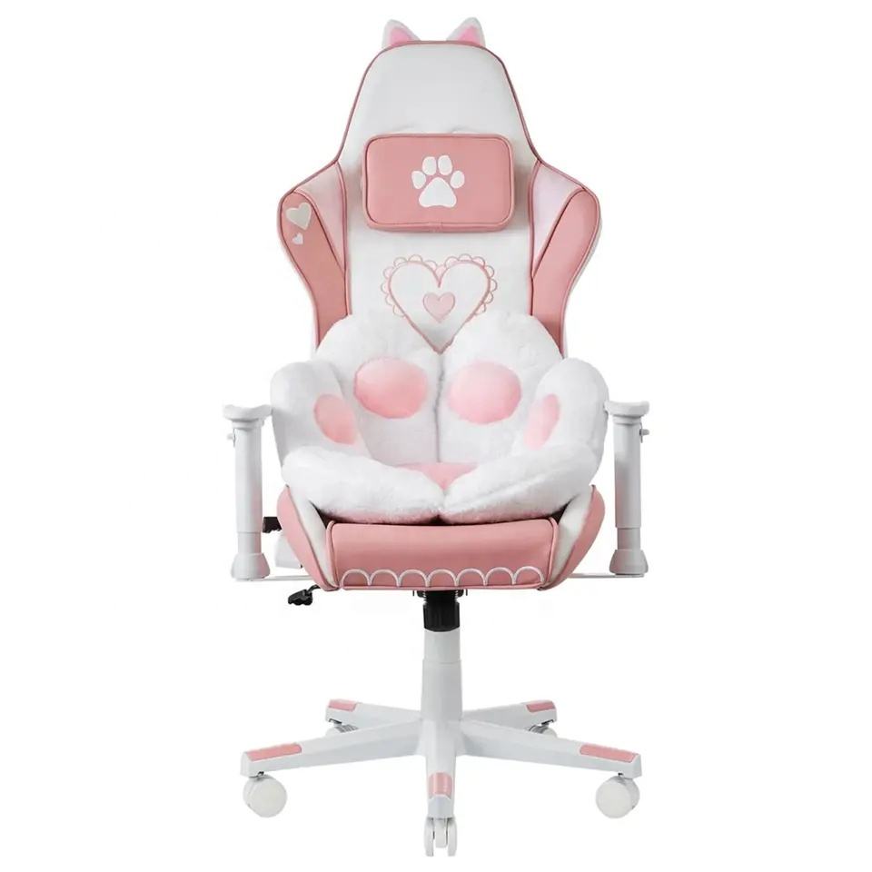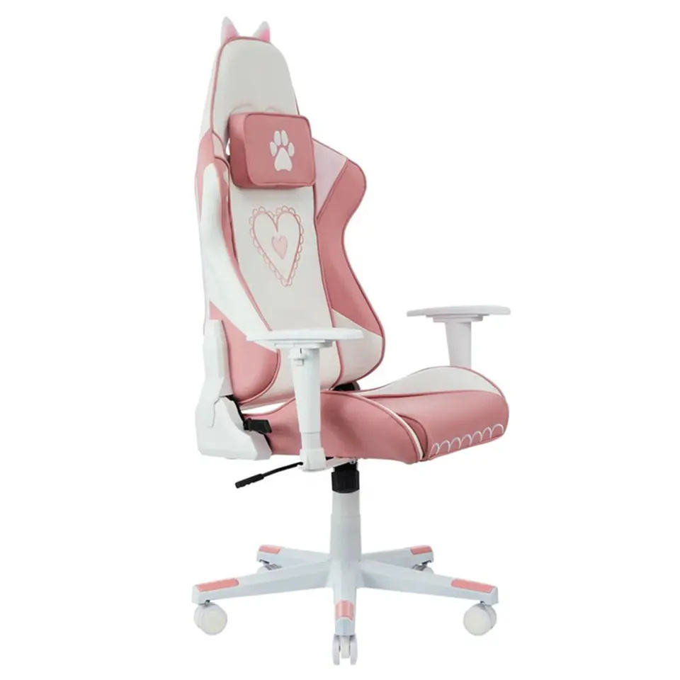 Silla Gamer Rosa para Mujer, Envío Gratis, Escritorio para Computadora, Silla de Juego Económica en Existencia, Personalizada, 2D, Blanca, con Brazos, Linda Chica Gato con Patas