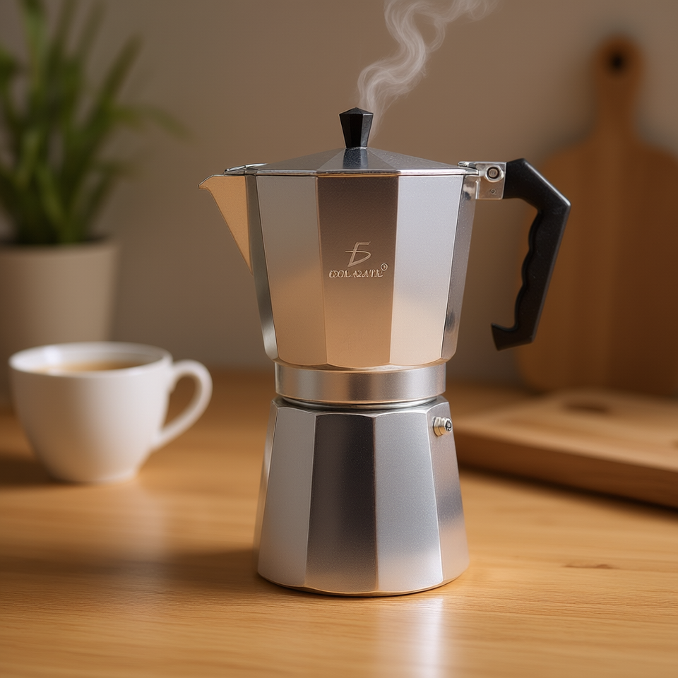Cafetera Manual Estilo Italiano Plateada de 150 ml ELEGATE VAS.27, Diseño Vintage, Tapa Metálica, para Espresso en Casa