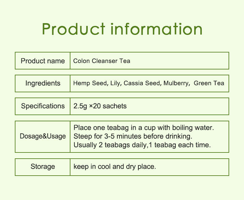 Ingrediente Principal:Semilla de Cáñamo, Lirio, Semilla de Cassia, Morera, Té Verde