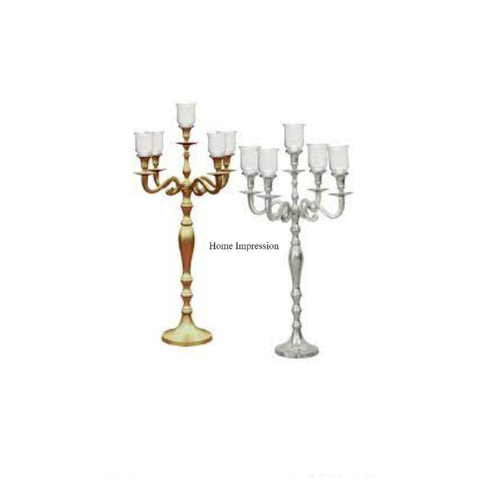 Personalización de color y tamaño disponible Juego de 2 aluminio fundido con 5 brazos Candelabro acrílico Suministros de candelabros de lujo