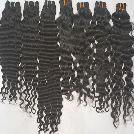 Color negro indio extensiones de cabello humano sedoso recto indio Remy trama de cabello doble textura rizada cuerpo Remy profundo de alta calidad