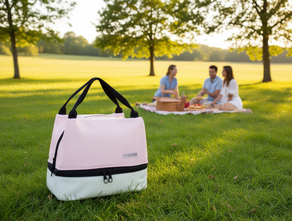 Bolsa Térmica Trapezoidal Color-Block 600D con Asa y Cierre de Cremallera para Almacenamiento de Alimentos