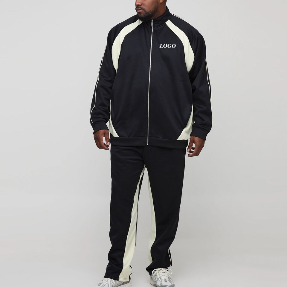 Chándal para hombre con diseño de bloques de color y material transpirable, con pantalones de diseño moderno para compradores mayoristas de ropa casual.