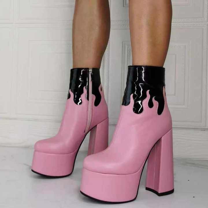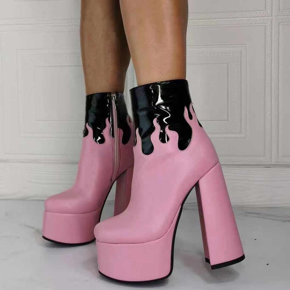 Botines de Plataforma Alta con Bloques de Color, Talla Grande 43, para Mujer, Tacón Grueso, Cierre Lateral, Botines Cortos de Moda para Damas
