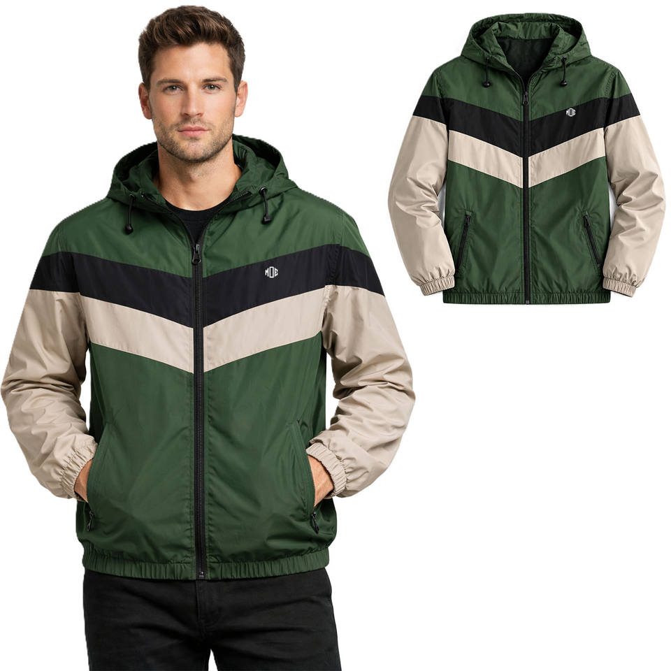 Chaqueta cortavientos con capucha y bloques de color para hombre, impermeable, de nailon, para uso en exteriores, ropa urbana, logotipo personalizado, alta calidad, venta al por mayor, MOQ bajo