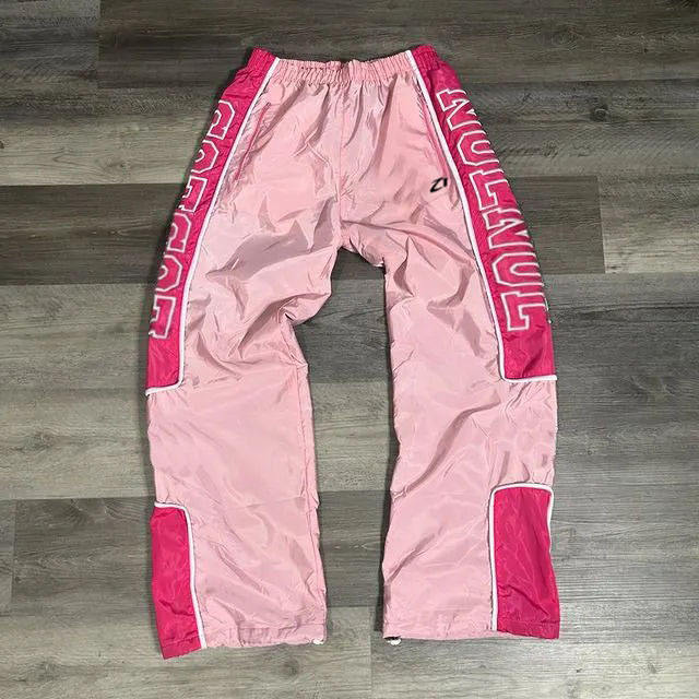 Pantalones Deportivos con Paneles de Color y Gráficos para Hombre, Cintura Elástica, Corte Holgado, Ligeros, Resistentes al Viento, con Letras Laterales, Estilo Urbano, Pedido al por Mayor