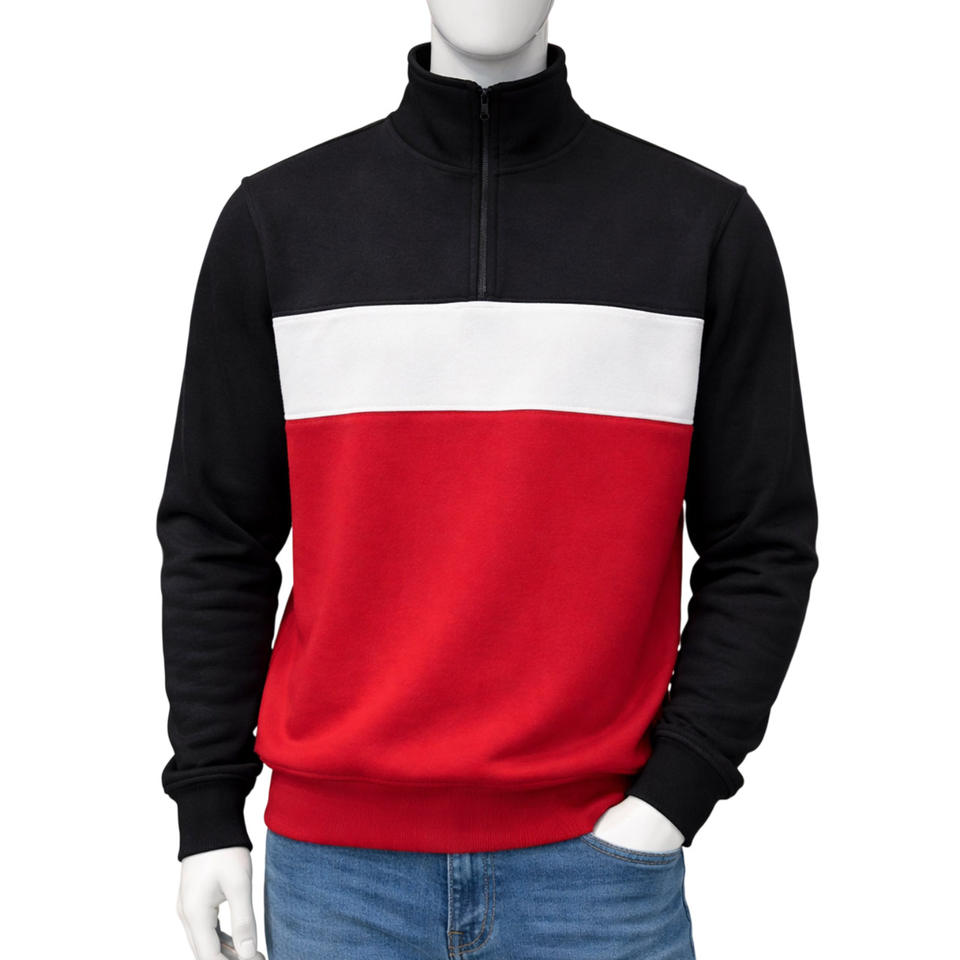 Sudadera de Forro Polar de Cuello Alto con Cremallera, Diseño Color Block, Tres Tonos, Estilo Urbano Casual, Sin Capucha, para Hombre