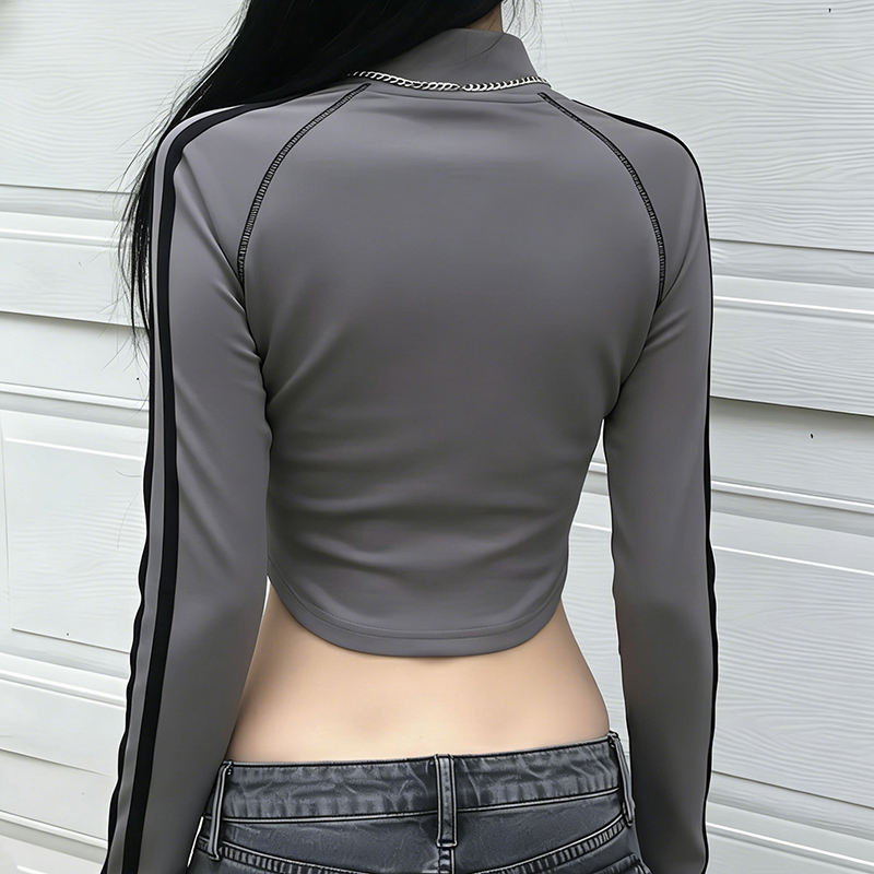 Camiseta de Manga Larga con Cuello Alto y Cierre de Cremallera, Estilo Urbano, Ajustada, Estilo Motero, Moda Casual Y2K