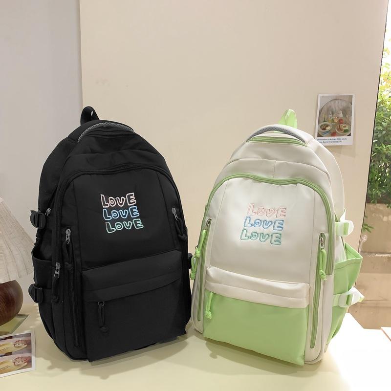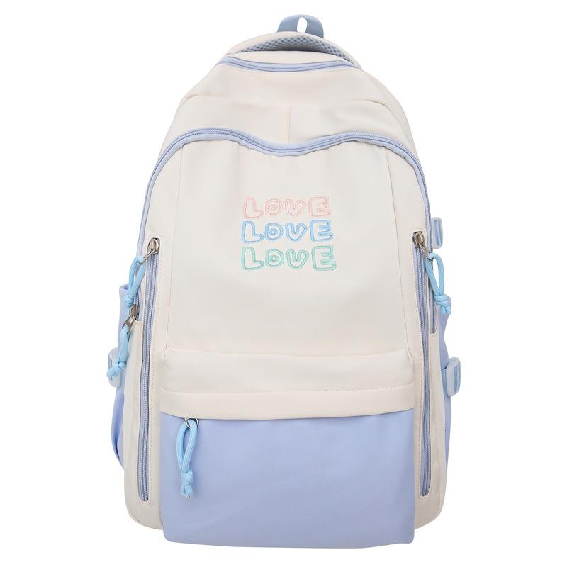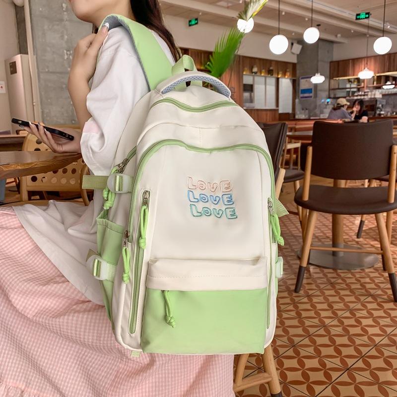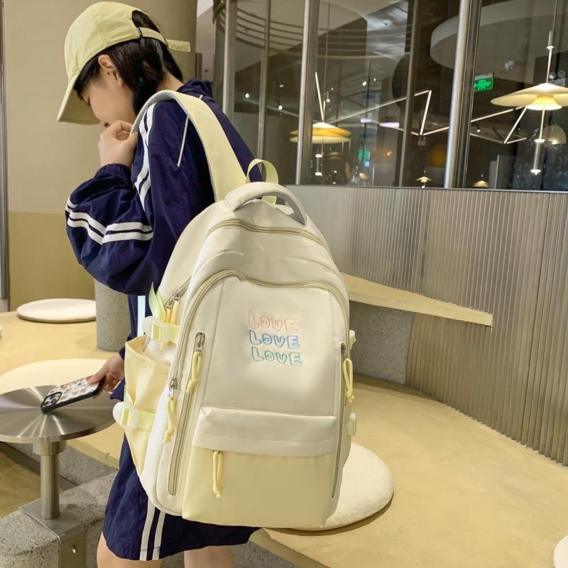 Color Blocked Backpack For Girls 15 Inches Large Capacity School Backpack With Letter Design Lightweight Student Backpack