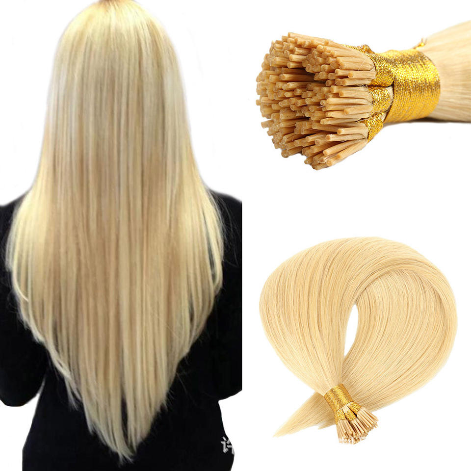 Extensiones de Cabello Humano Liso Rubio 613 con Punta I, 50 Piezas/Set, Cabello Natural Real con Punta I, Económicas para Salón, 100% Queratina Remy