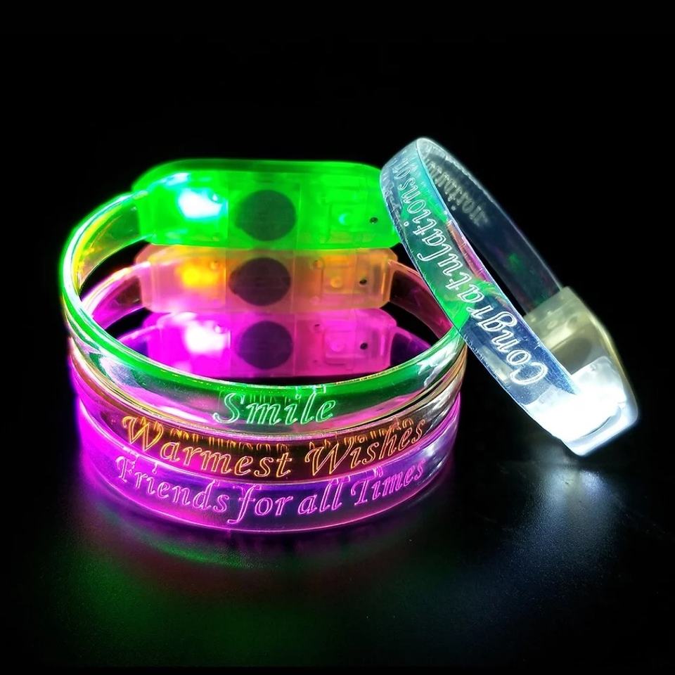 Cambio de Color LED de sonido activado pulsera intermitente pulsera ajustable led intermitente muñeca banda de luz led