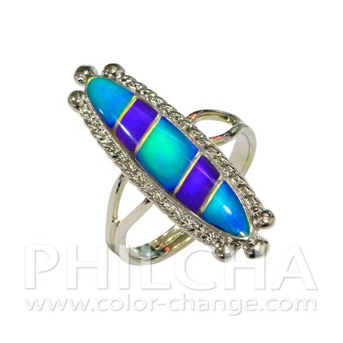 Anillo de estado de ánimo doble de moda de aleación de zinc con cambio de color con patrón de rayas
