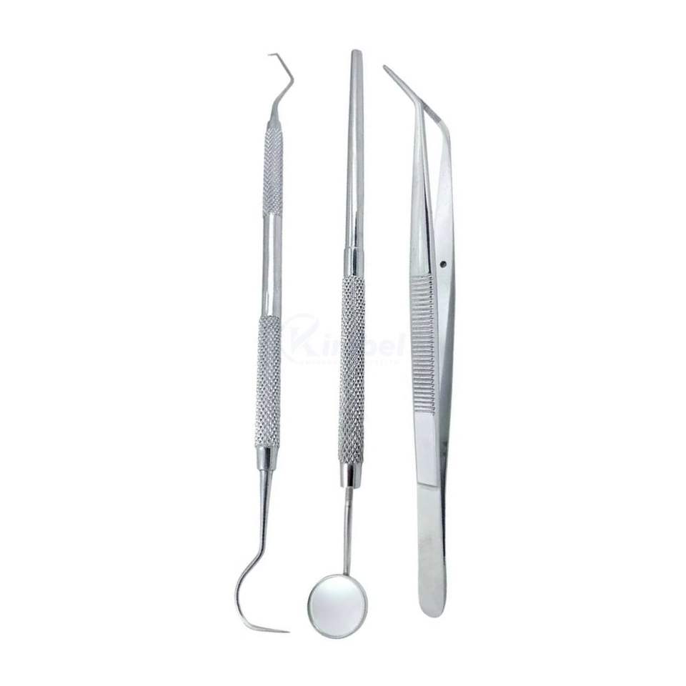 Juego de Exploración Dental con Código de Color, 3 Piezas, Espejo, Sonda y Pinzas de Acero Inoxidable para Uso Profesional en Clínicas, Personalizable