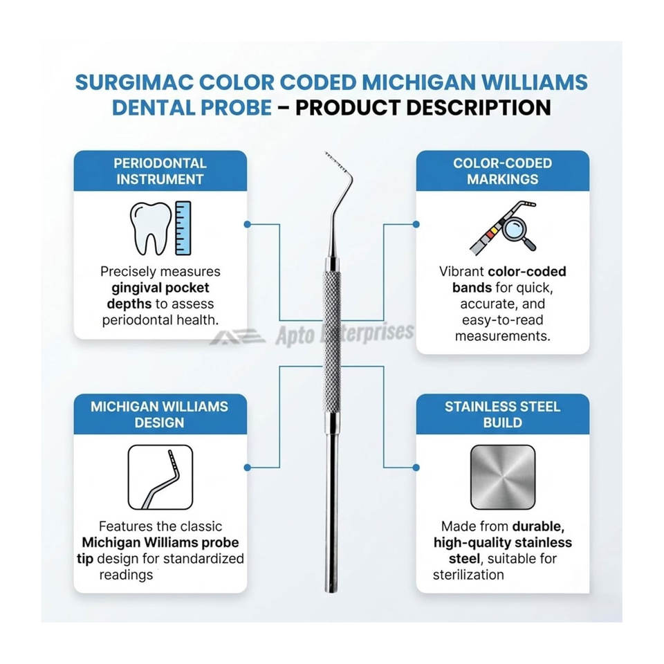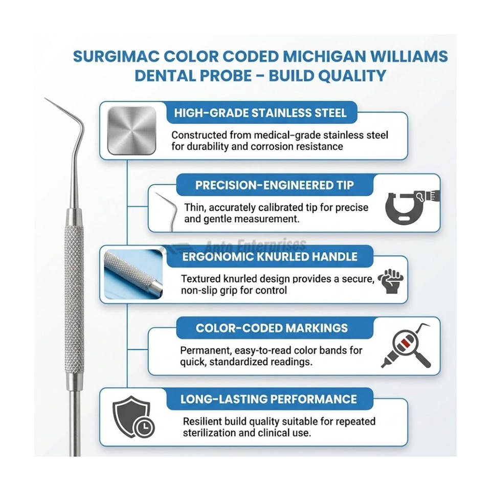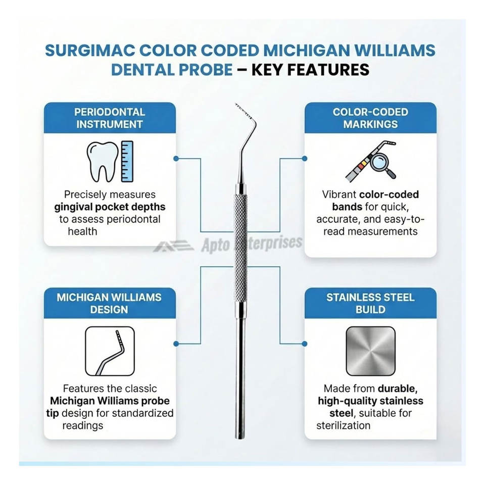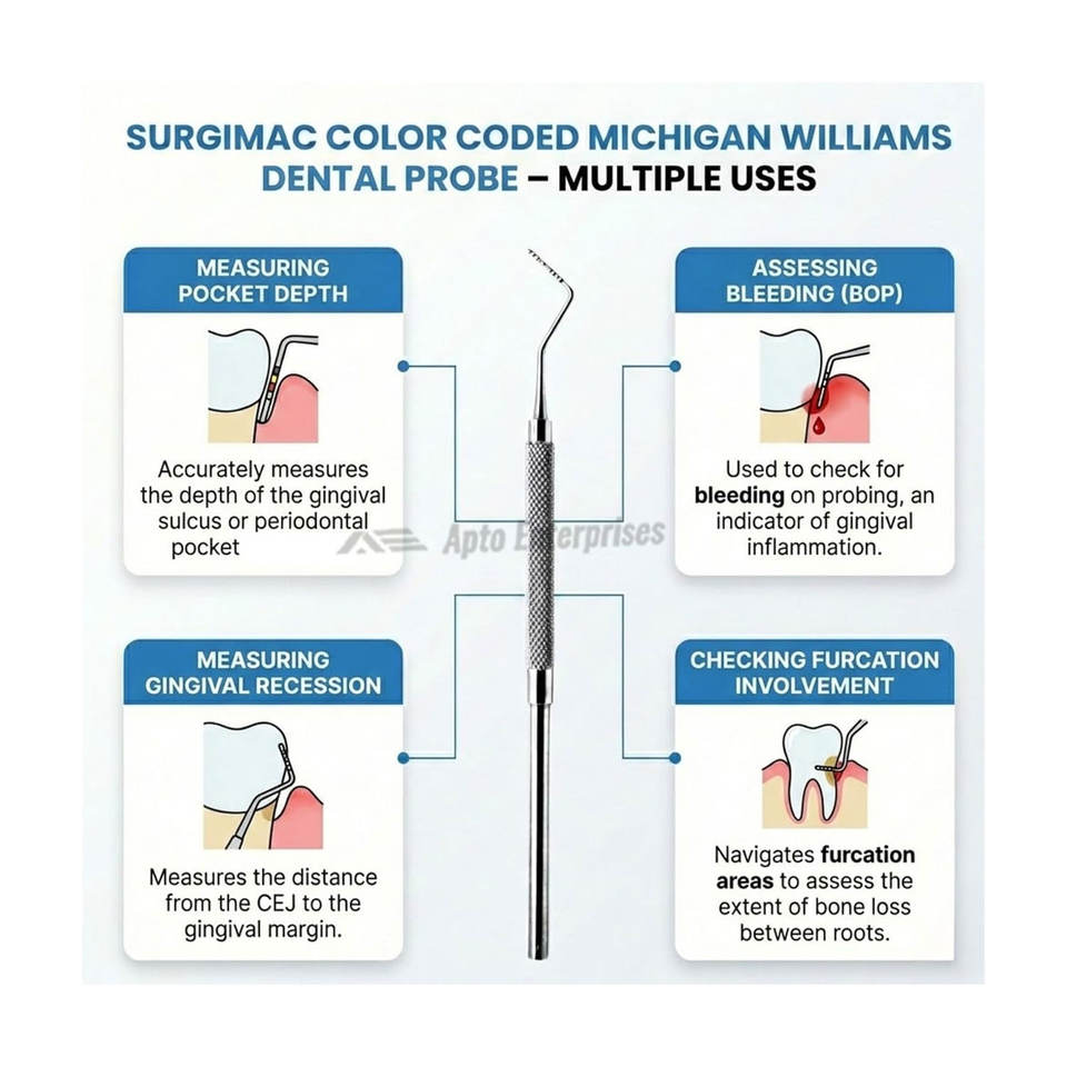 Sonda Dental Manual con Código de Color Michigan Williams, Instrumento Periodontal de Acero Inoxidable, Certificado CE Clase I para Profesionales