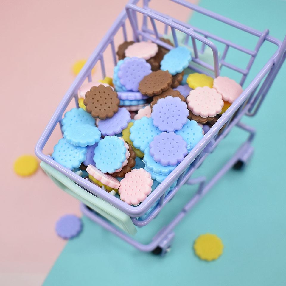 Cabujones de resina con diseño de galleta de colores, base plana, pequeños y redondos, simulación de alimentos, para slime, llaveros, manualidades y decoración