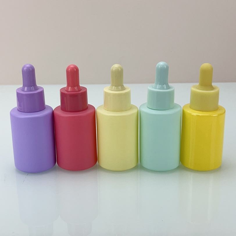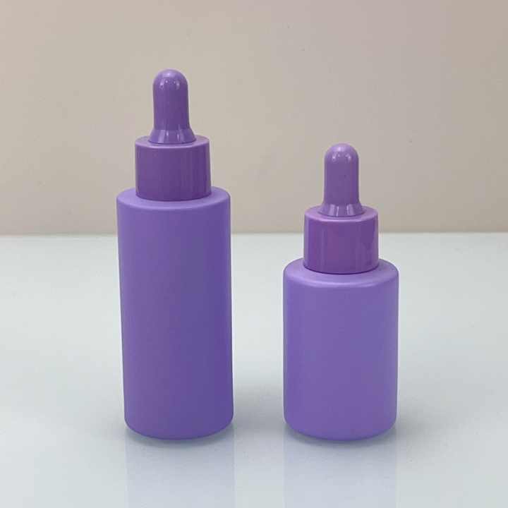 Botella de 30ml/1oz para Suero o Aceite Esencial, Color Personalizable, Morado Mate, Impresión Serigráfica, con Gotero