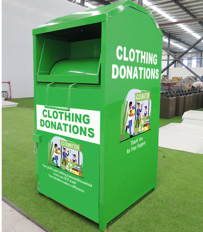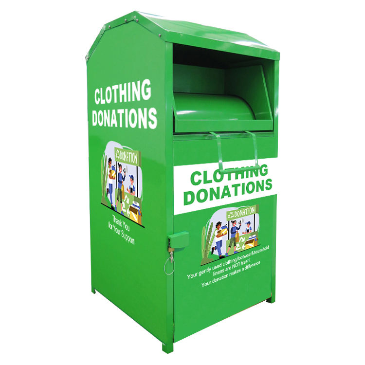 Papelera de donación de ropa personalizada de color, diseño personalizado, ropa de zapatos, lata de reciclaje, contenedor usado de ropa