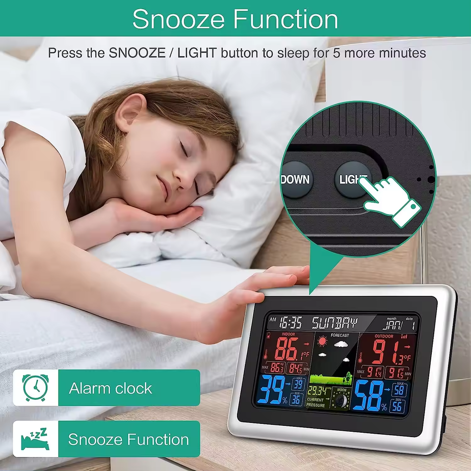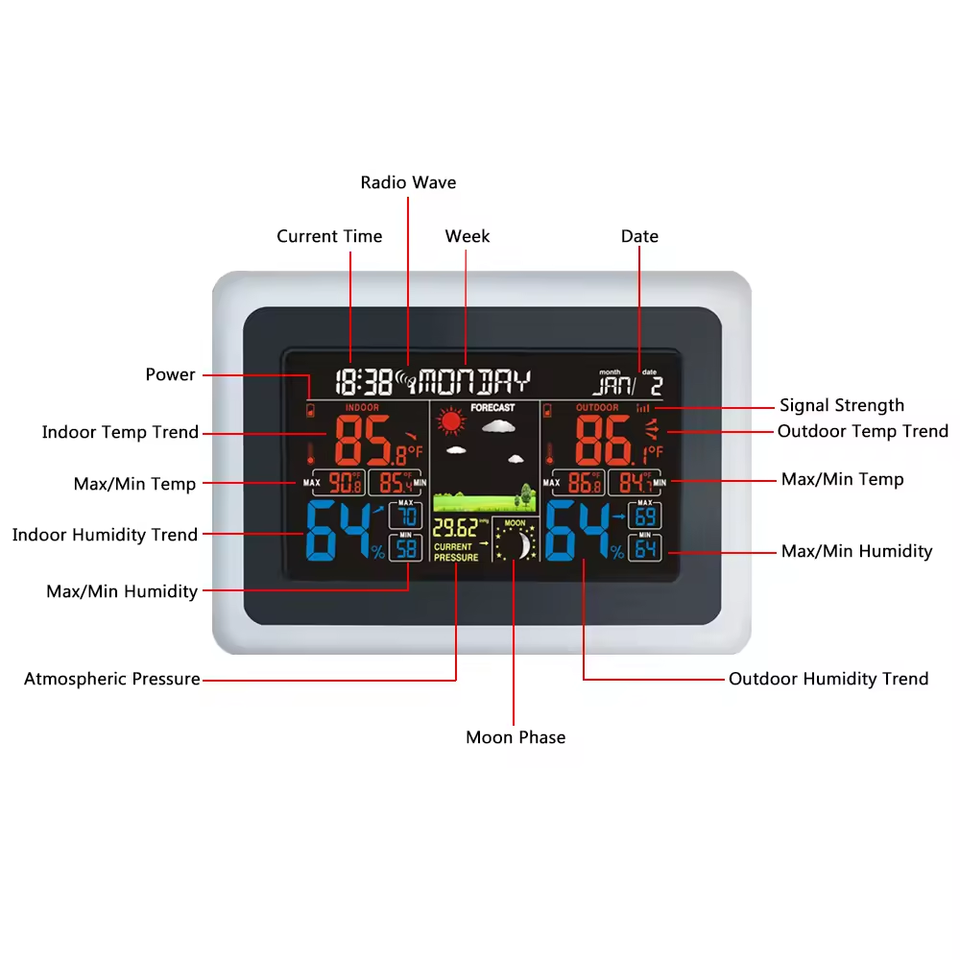 Pantalla a color Alemania DCF radio control reloj Mesa estación meteorológica pronóstico del tiempo RELOJ TEMPERATURA humedad RF reloj