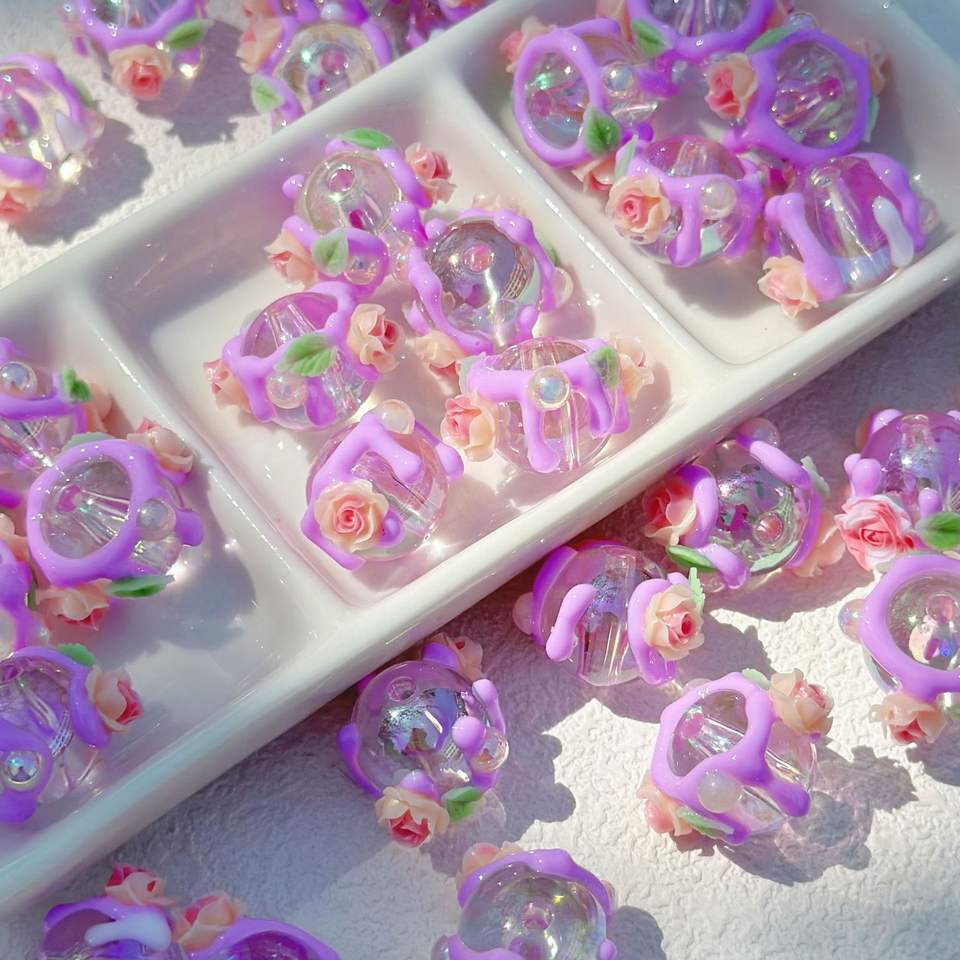 Color Flower Series Cuentas pintadas a mano Accesorios de bricolaje Cadena de teléfono móvil Accesorios de joyería Cuentas de acrílico Caliente