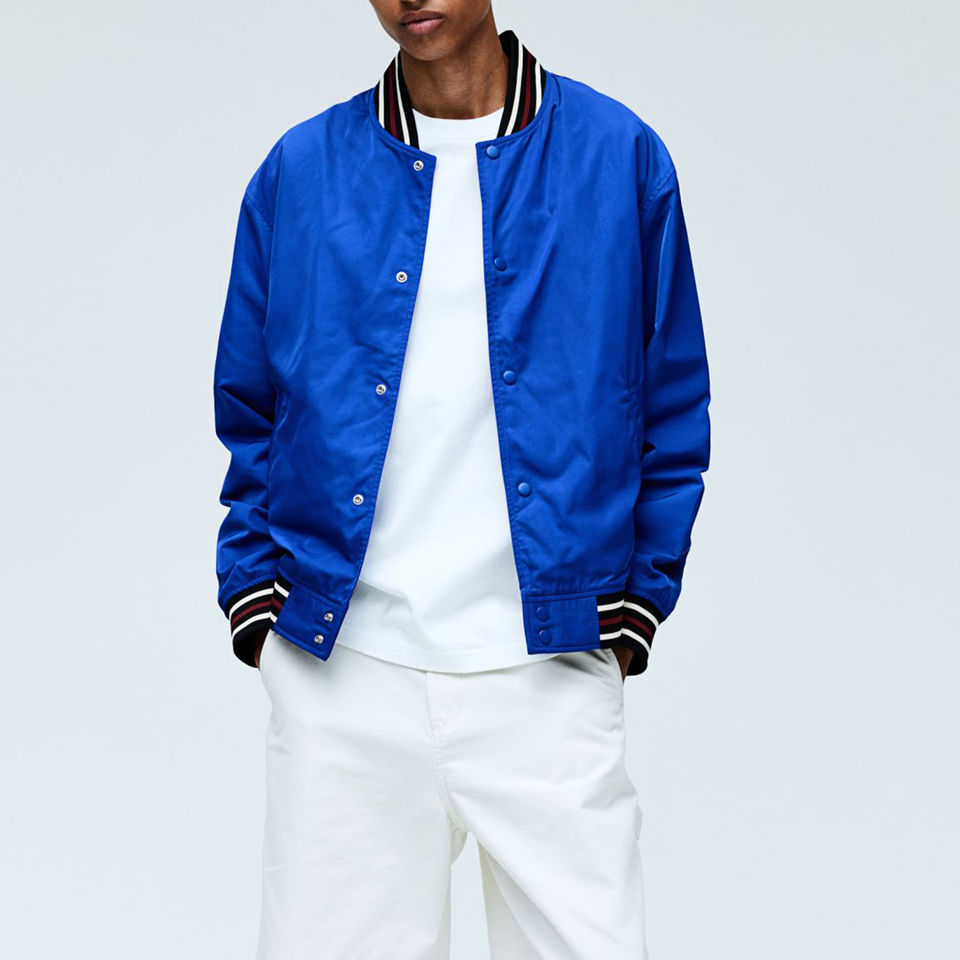 Chaqueta de bombardero cortavientos para hombre con logotipo bordado personalizado completo de color de talla grande 100% poliéster impermeable chaqueta de seda para hombre