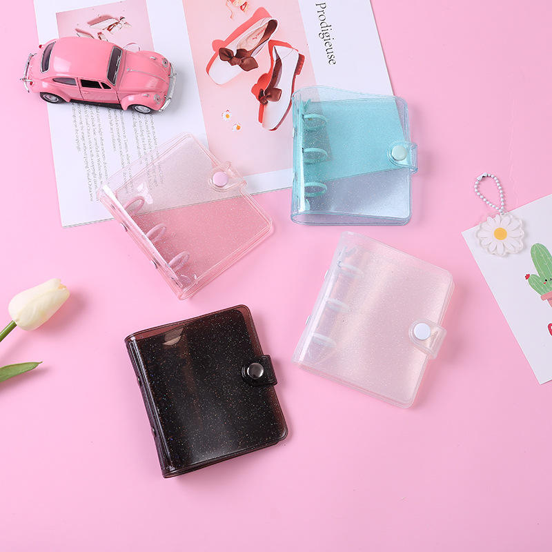 Funda de carpeta de 3 anillos con purpurina de Color, carpeta de hojas holgada, cubierta de cuaderno de bolsillo, Mini bolsa transparente de PVC, bolsa de sobre