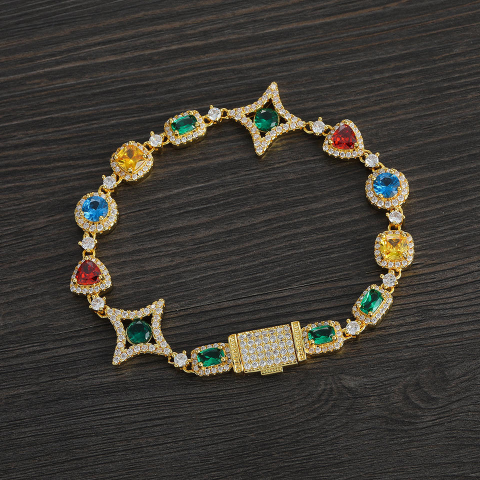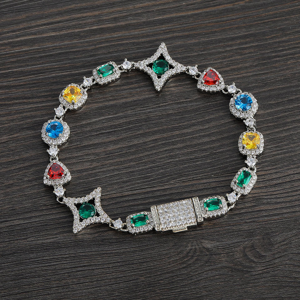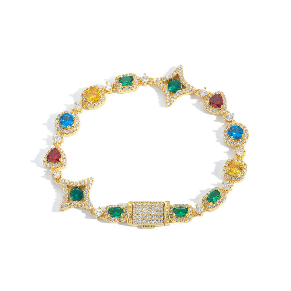 Pulsera de zirconia grande de colores variados con cierre de caja, pulsera apilable de zirconia con incrustaciones de cobre, cadena de tenis para mujer Tanjing