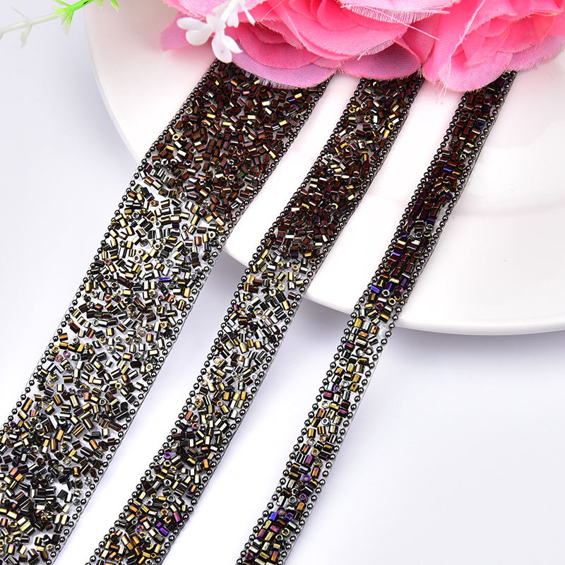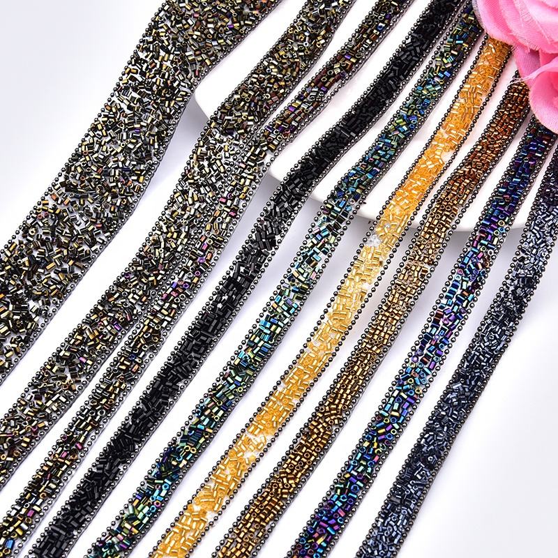 Cuentas de tubo de color, cadena de diamantes de imitación, cinta de diamante de cristal Hotfix, ajuste de ropa, vestido de Boda nupcial, cinturón, bandas decorativas DIY