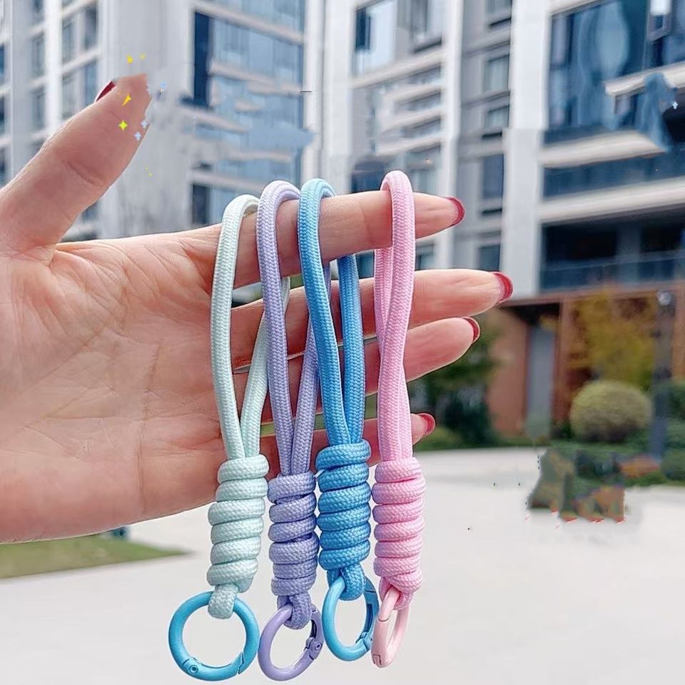 Cordón trenzado de cuerda de colores para cámara y teléfono móvil, cadena corta con dije, antipérdida, correa de muñeca para coche, llavero