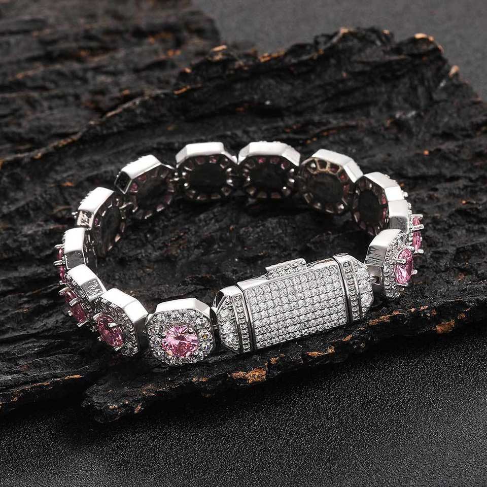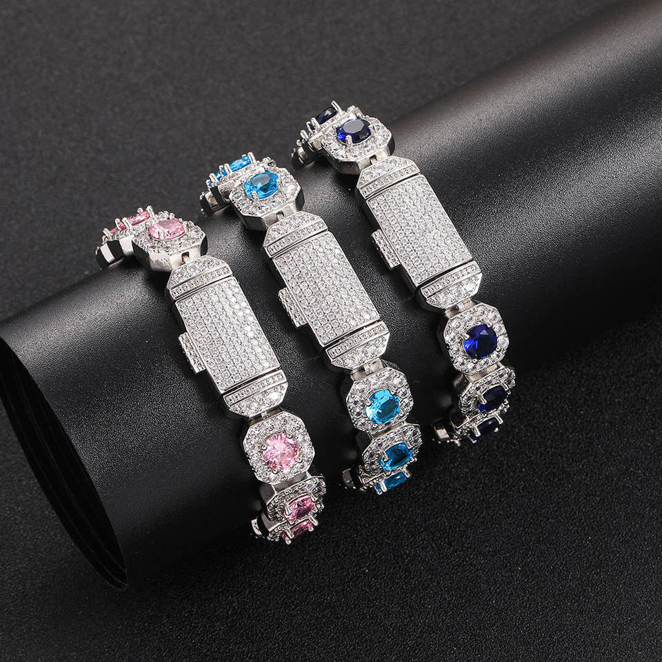 Pulsera de circonita de color de 12 mm con botón abatible, cadena de azúcar de roca, accesorios de pulsera para hombre estilo hip hop Tanjing