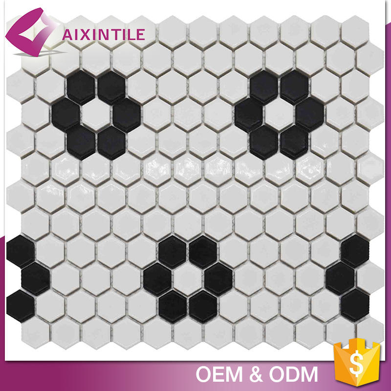 Color blanco y negro forma hexagonal de cerámica mosaico de baldosas