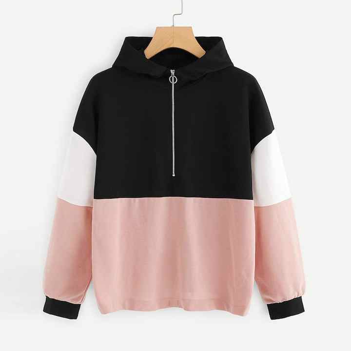 Sudadera Corta con Capucha para Mujer, Diseño Color Block, Impresión de Logotipo Personalizado, 100% Algodón Felpa, Alta Calidad