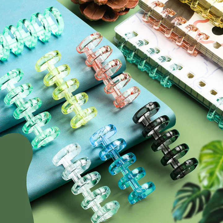 Nombre del producto:Colorido transparente de 5 agujeros de plástico anillo de hojas sueltas