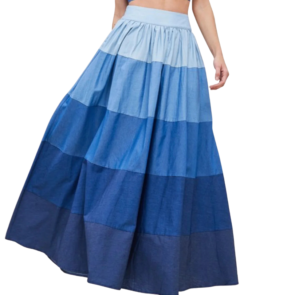 Falda Midi a Capas con Dobladillo Asimétrico, Cintura Alta, Suave y Transpirable, Estilo Casual con Bloques de Color, Diseño Personalizado OEM ODM 100%