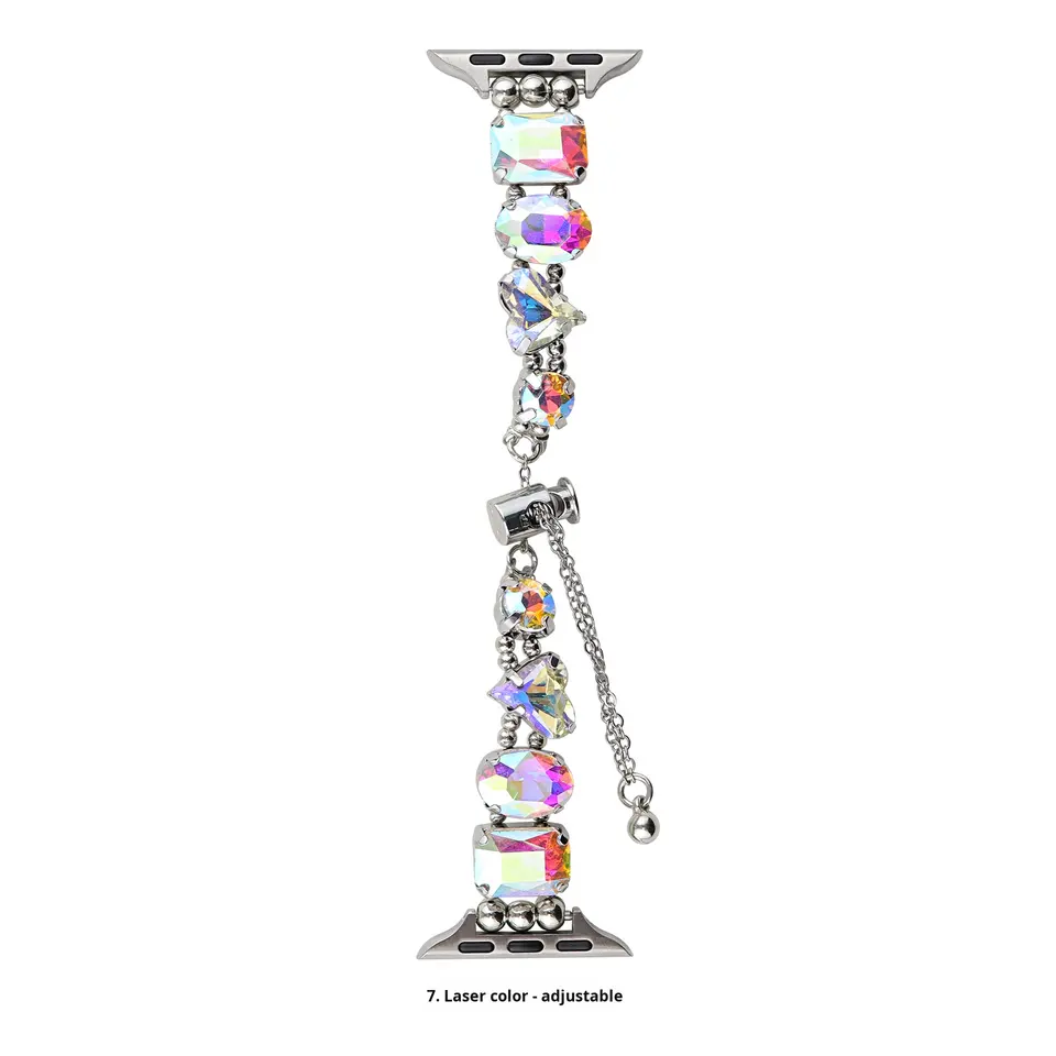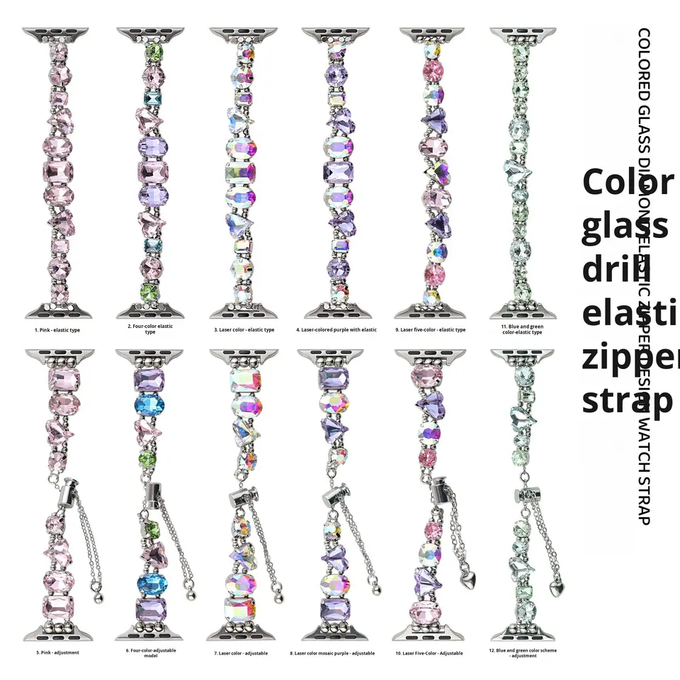 Cristales de Vidrio de Colores, Diamantes 3D, Ecológicos, con Fijación en Caliente, Correa Elástica con Cierre, Ojo de Caballo, para Apple Watch, iWatch 9.ª Generación, Huazi