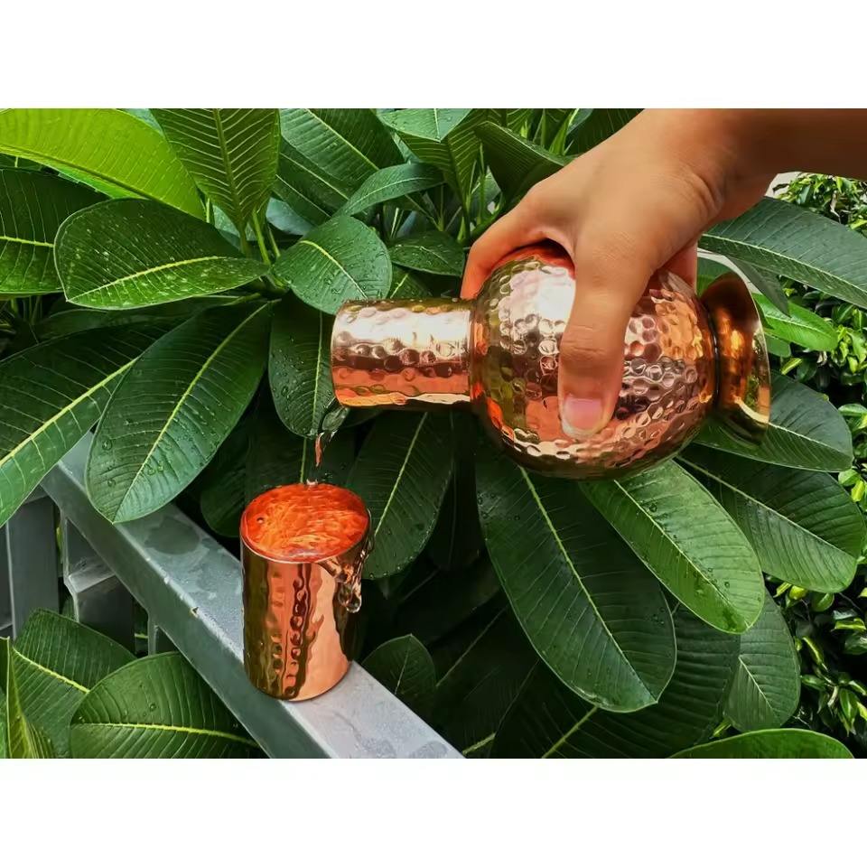 Vajilla de cobre con recubrimiento de color, beber de una jarra de cobre es una experiencia que se siente a la vez reconfortante y refrescante.
