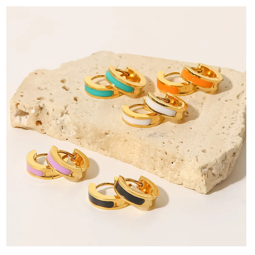 Colorido 18K chapado en oro esmalte aro Stud pendientes diseño Simple estilo Vintage perla hipoalergénico Acero inoxidable regalo perfecto