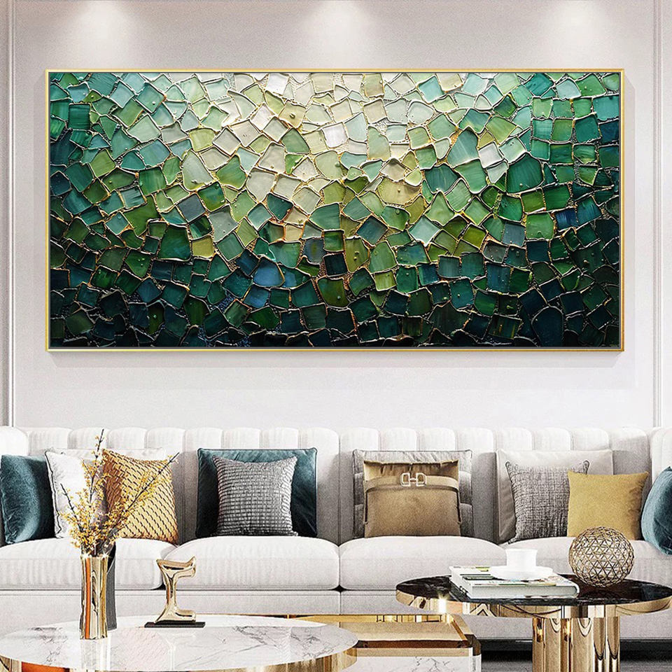 Colorido bloque abstracto cuchillo pintura al óleo lienzo moderno clásico hecho a mano póster arte de pared para sala de estar decoración del hogar sin marco