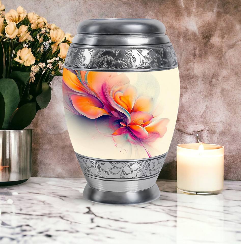 Urna Ecológica Personalizable con Diseño Floral Abstracto y Colorido para Cenizas Humanas, para Adultos, Hombres y Mujeres (10 Pulgadas)