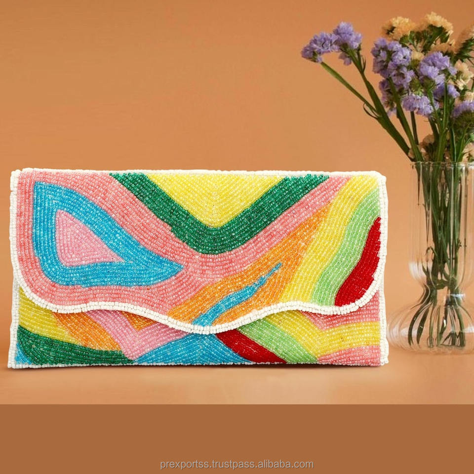 Decoración de bordado: El bordado a mano con cuentas de diferentes tonos de color añade un toque único y elegante, mejorando la atracción visual y el valor del clutch.