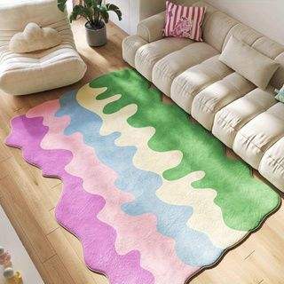 Alfombra de Felpa Abstracta Colorida, Textura Suave de Terciopelo, Mezcla de Poliéster de Alta Calidad para Sala de Estar o Dormitorio