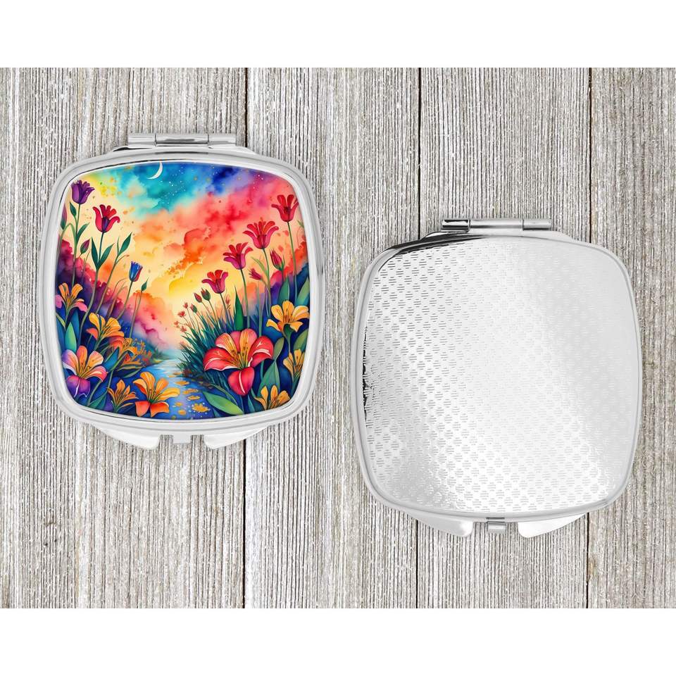 Espejo de maquillaje de viaje compacto Alstroemerias colorido espejo de bolsillo plegable de mano para mujeres y niñas Idea de regalo decorativa