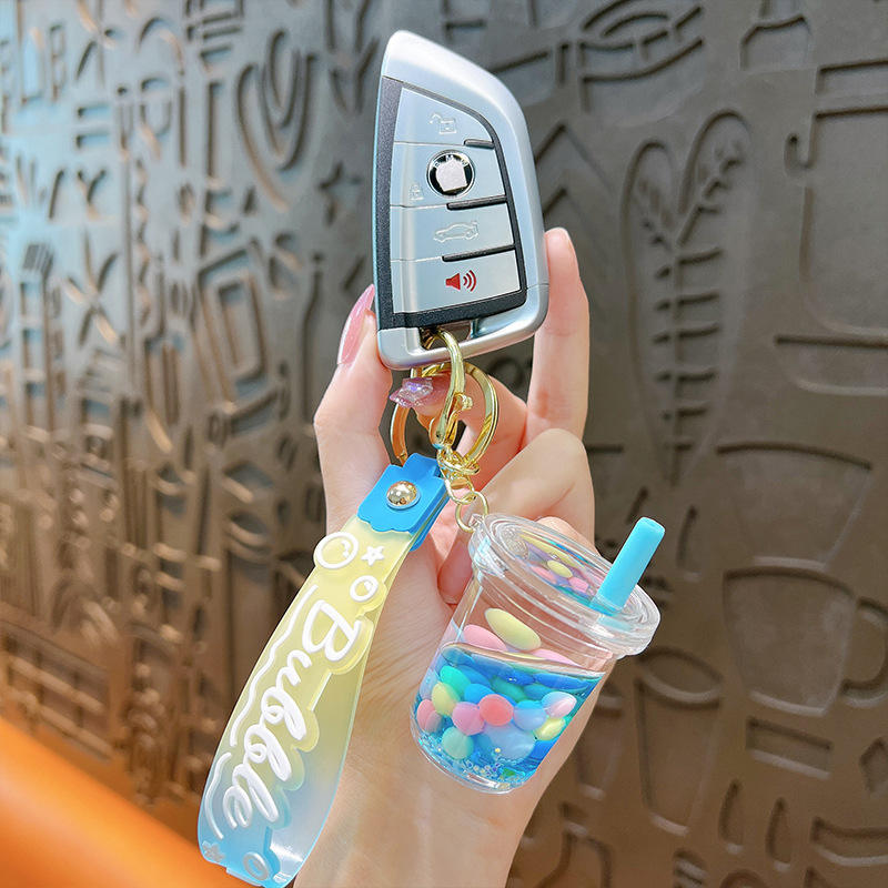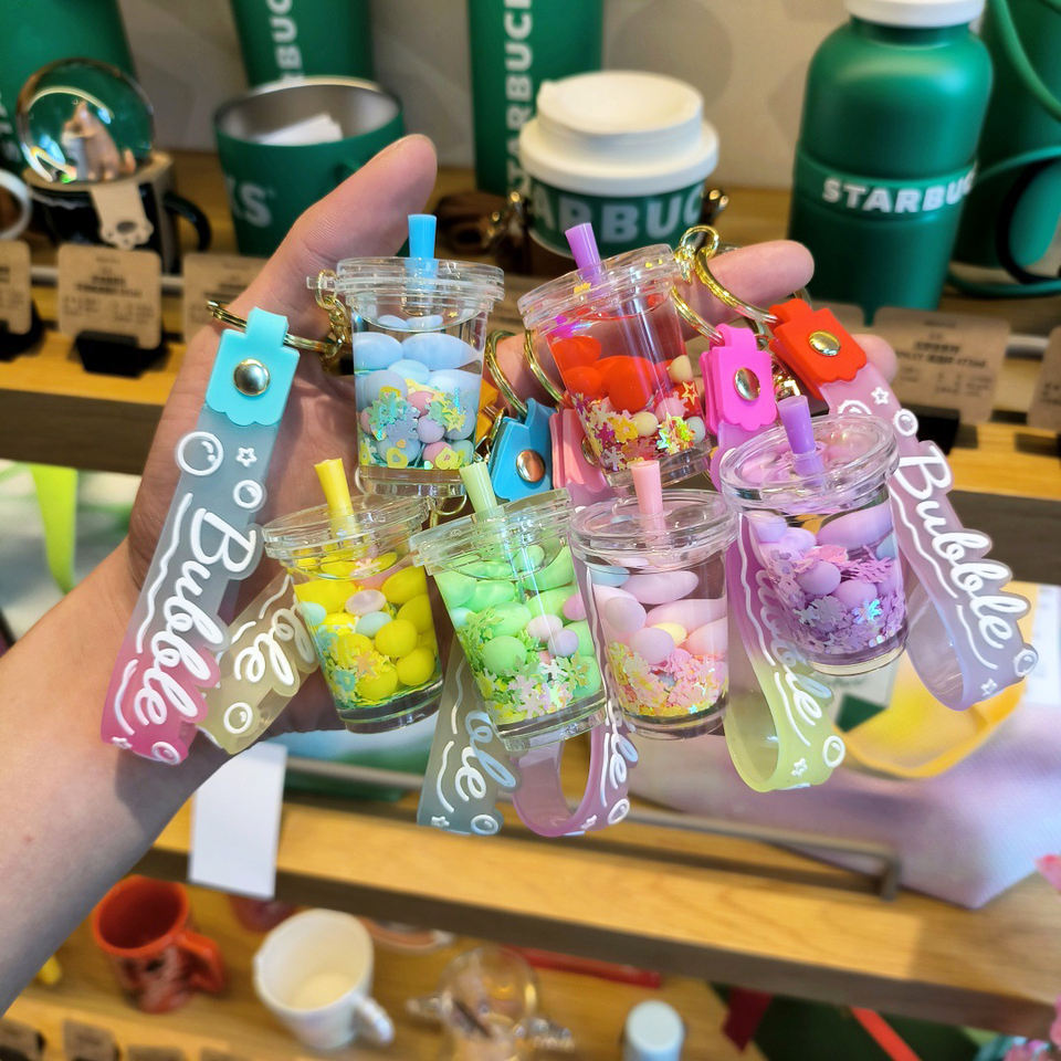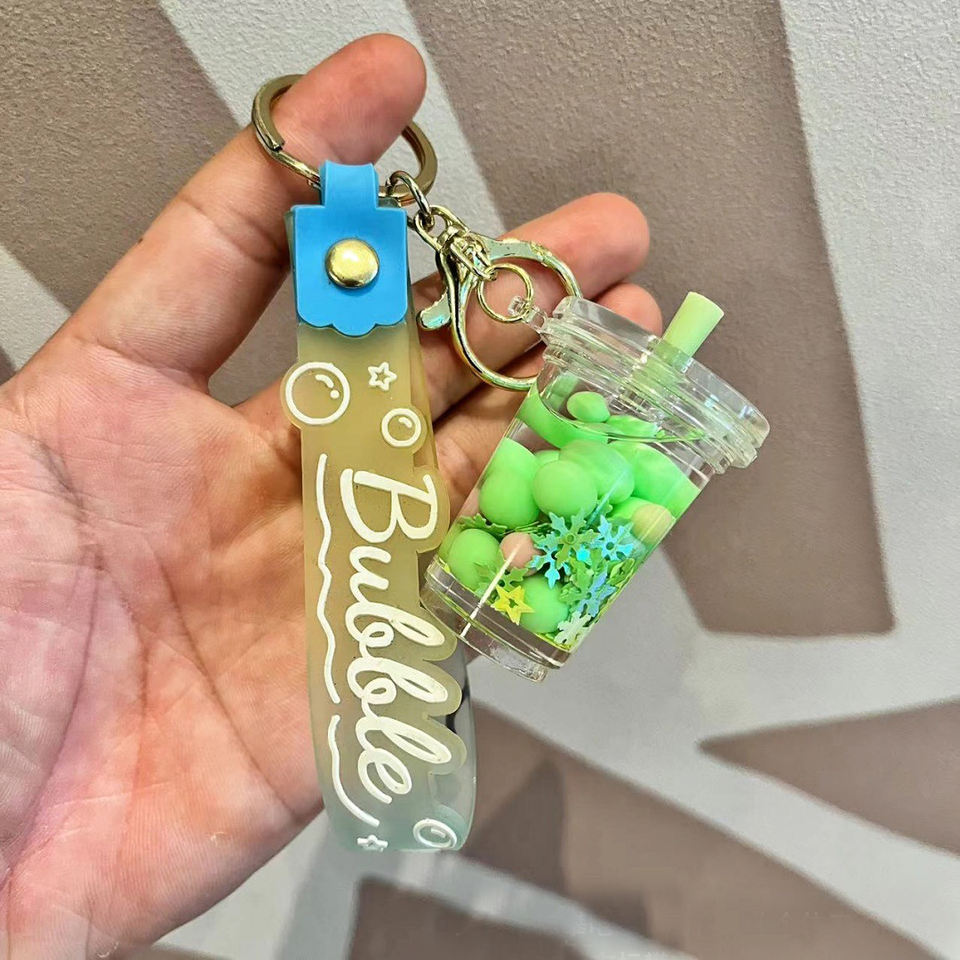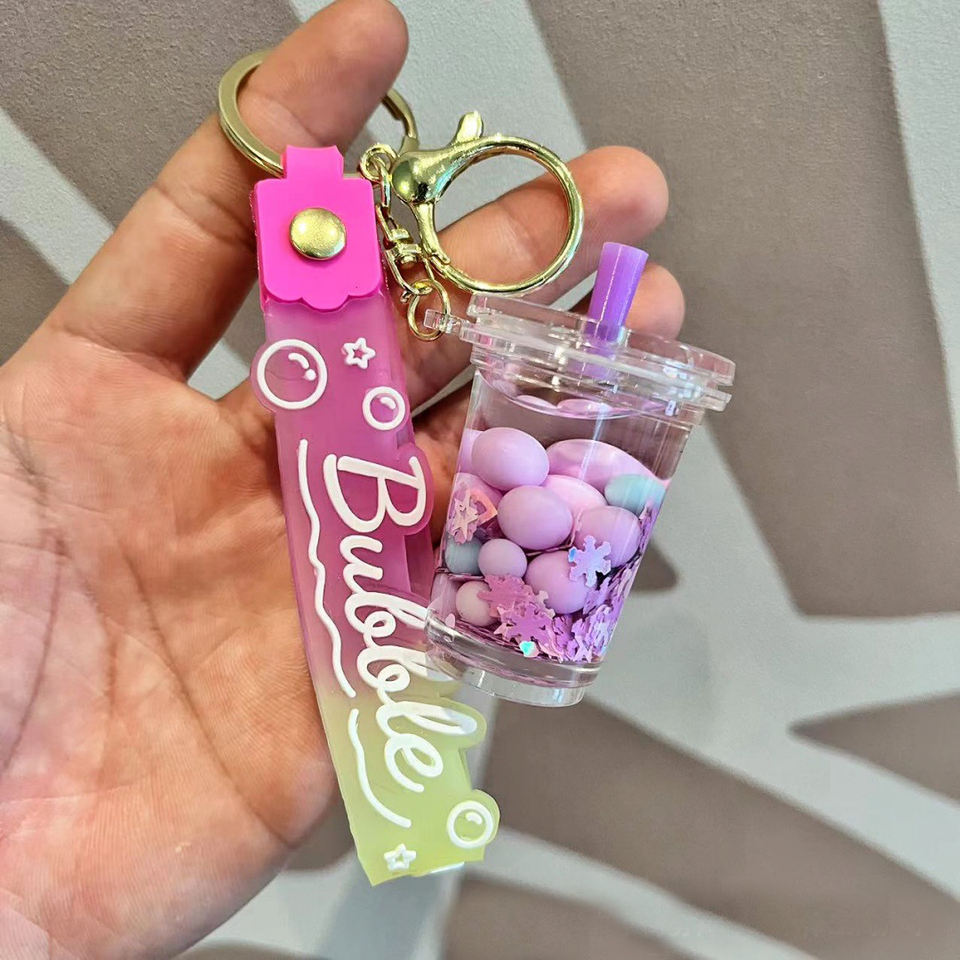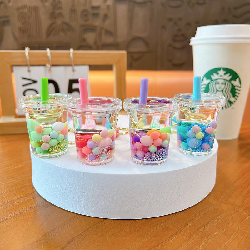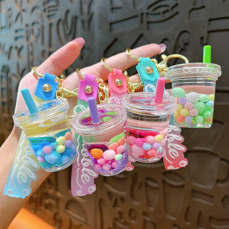 LLavero de líquido de té de la leche Boba colorido, burbuja flotante bonita personalizada para bolsa colgante de coche, dijes Diy, joyería, llaveros acrílicos
