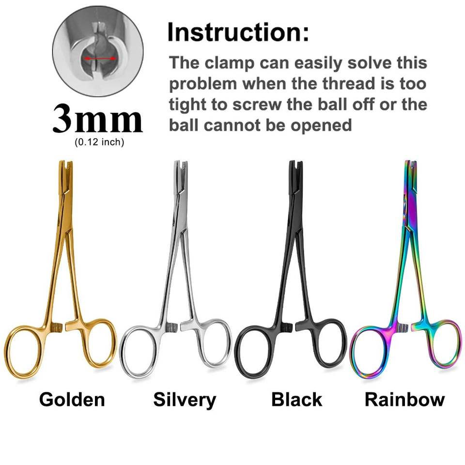 Herramienta de abrazadera para Piercing corporal de colores, pinzas manuales de acero quirúrgico, pinzas para perforación de lengua para cartílago del tabique
