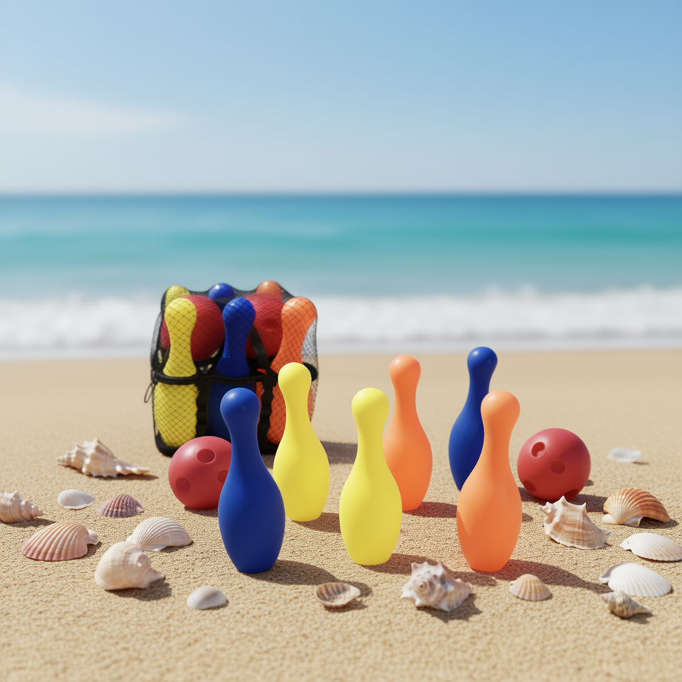Juego de bolos colorido, 6 pines, 2 bolas, bolsa de red, juego de playa al aire libre para niños de 8 a 13 años, juguete unisex