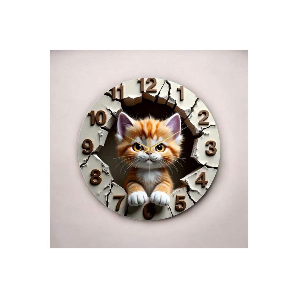 Reloj de pared de mesa de madera con diseño de gato y niños colorido, regalo silencioso de 50cm con número, diseño único para decoración del hogar