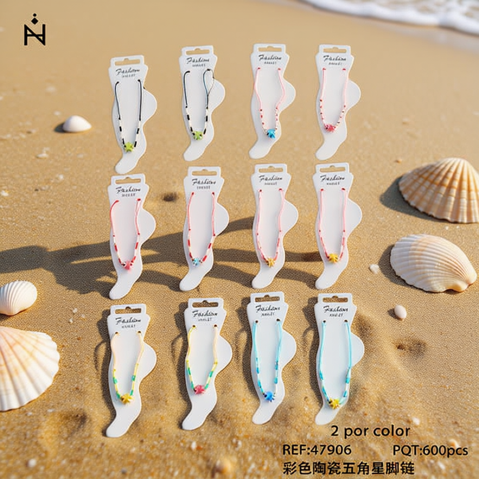 Tobillera de Cerámica Colorida con Forma de Estrella de Cinco Puntas, 2 por Color, Joyería de Moda para Mujer